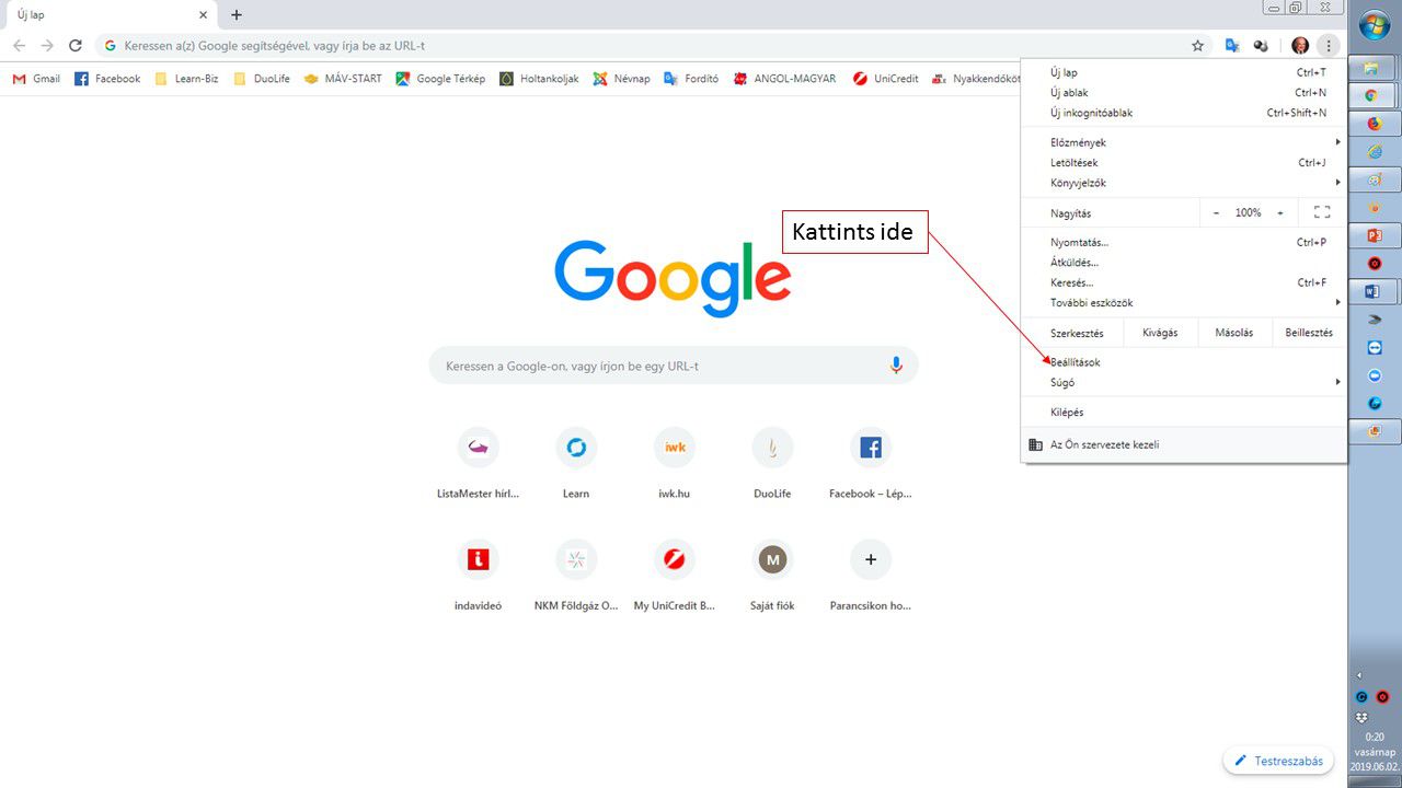 A következő a lépéseket más böngészőnél ki kell hagyni!