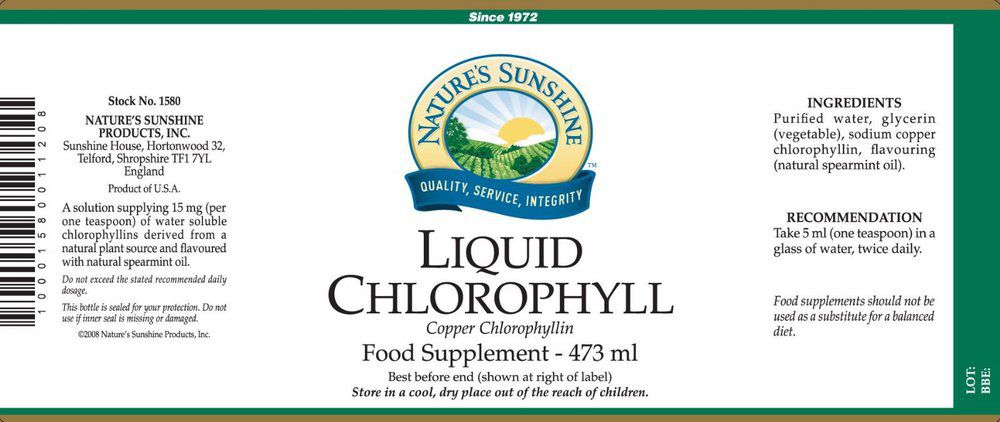 Az NSP a cseppfolyós klorofillt a lucernából nyeri ki. A lucerna az egyik legjobb forrása a fehérjének, klorofillnek, karotinnak, az A, D, E, B6 és K-vitaminnak és néhány emésztési enzimnek. A mély gyökerű rendszerének köszönhetően - amely segíti a jobb ásványi anyagok felszívódását - a lucerna jó mész, magnézium, foszfor, vas, kálium és nyomelem felszívó hatású.