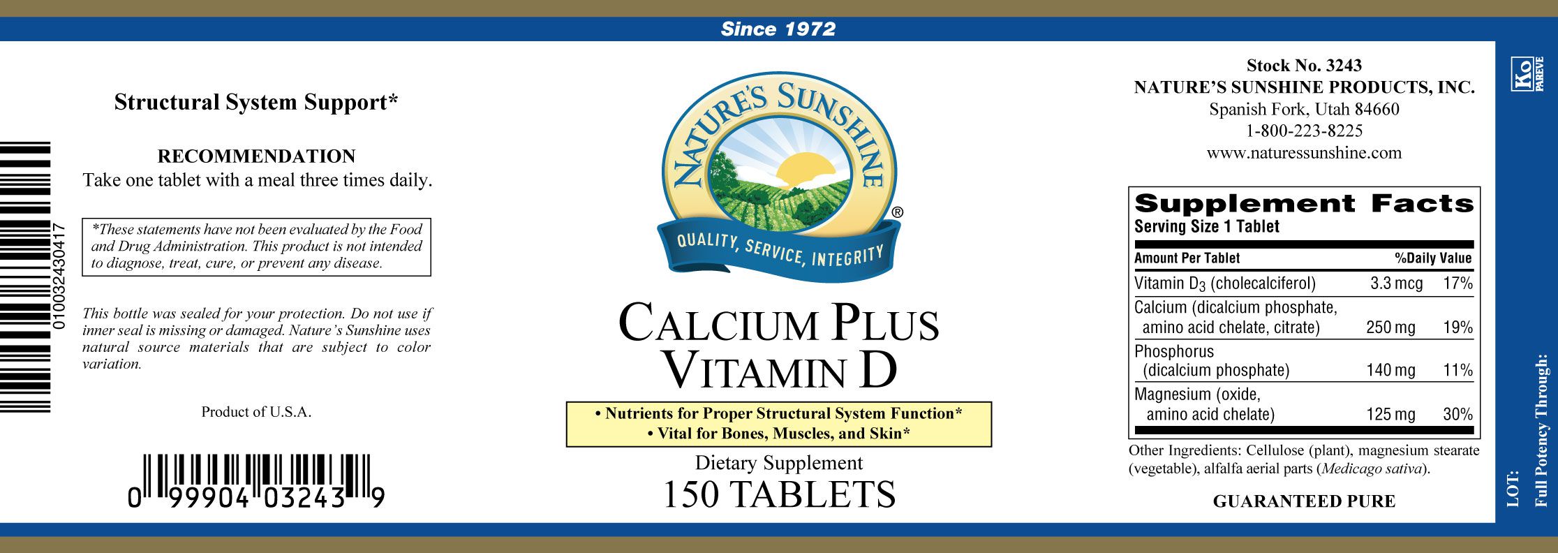 A Kalcium Plus D-vitamin a Nature’s Susnhine cég egyik legközismertebb táplálékkiegészítő terméke. A kalciumon és D-vitaminon kívül a termék összetételében szerepel még foszfor és magnézium is. A termék mindegyik eleme segíti a fogazat és csontok egészségének megőrzését. A fő összetevő a kalcium, amely a csontokra és fogakra történő pozitív hatása mellett támogatja még az izomzat helyes működését, továbbá segíti az idegi ingerület átvitel megfelelő minőségének fenntartását is. A termékben található D-vitamin segíti a kalcium és foszfor megfelelő felszívódását és felhasználását. A foszfor segíti a sejtmembránok megfelelő működését, és hozzájárul az energia metabolizmus megfelelő szintjének fenntartásához. A termék összetételét kiegészíti még a magnézium, amely segíti az izmok és az idegrendszer megfelelő működését.