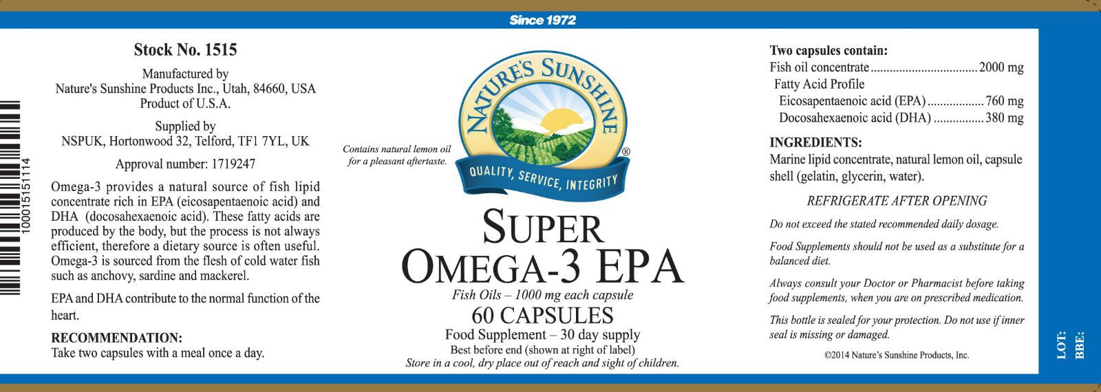 Az Omega-3 EPA zsírsavakat tartalmaz, amelyek közül egyike a négy alapvető zsírsavnak, amellyel a szervezet abszorbeál az élelmiszerekből. Az Omega-3 zsírsavak szükségesek a szervezet megfelelő működéséhez, különösen pozitív hatása van a szív-érrendszerre és az idegrendszerre.